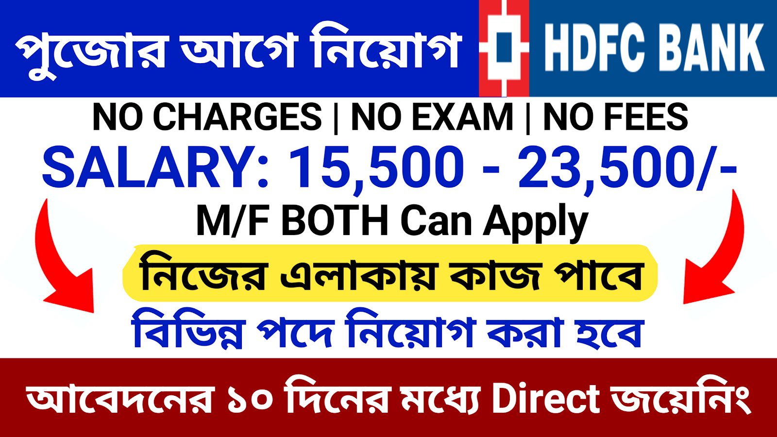 Bandhan Bank,ICICI Bank,Yes Bank, HDFC Bank, Axis Bank, Kotak Mahindra Bank Our Partner এবং আরও বিভিন্ন ব্যাংক এ Fresher Candidate দের সুযোগ দেওয়া হবে..... (Traning এর মাধ্যমে চাকরি তবে Training বা কাজের জন্য কোনো টাকা লাগবে না ) Male & Female Both Can Apply Age- 21 To 30 Fresher Also Welcome Qualification- Graduate Pass Minimum. Duty Time- 9Hrs হবে Week Off- 1দিন ছুটি হবে Training এর পর Salary হবে- 12500/- To 15500/- + PF + ESI. Traning হবে বেলঘরিয়া তে.. 40-45 দিন Training হবে. 02/11/2023 Interview Apply Now 👇👇👇 Call - 62912 85884 Thanks & Regards Subhajit Biswas S&S Solution Unit
